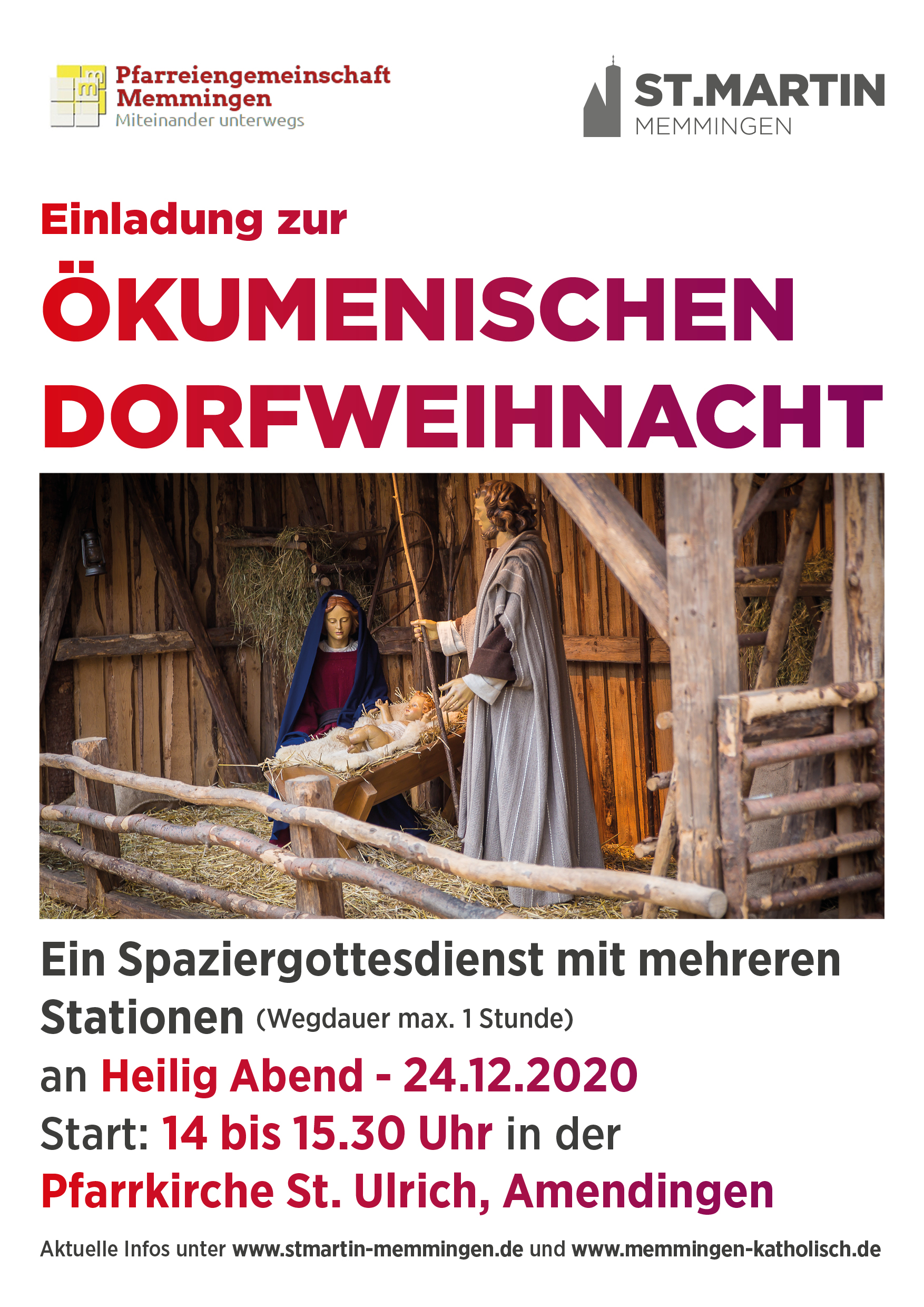 (Familien-)Spaziergottesdienst durch Amendingen mit mehreren Stationen um die Weihnachtsgeschichte mitzuerleben. Mehr ...